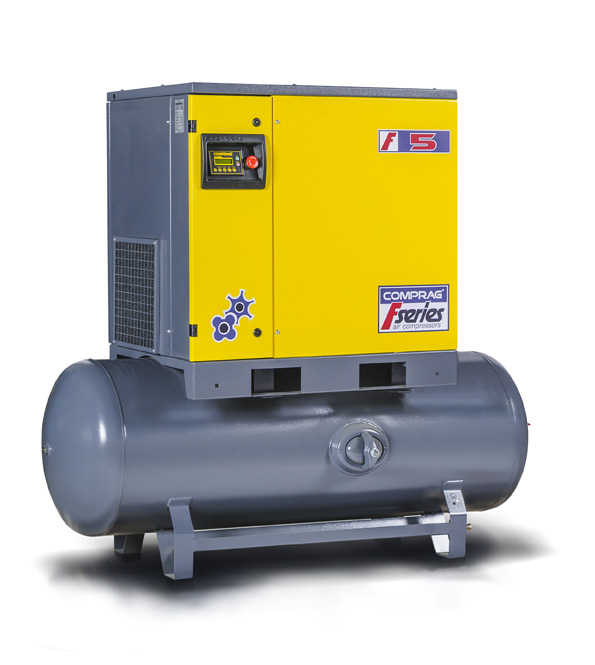 Новая компановка компрессора: горизонтальный бак сепаратора, металлическая разводка, винтовой блок и клапаны управления производства Comprag Германия.