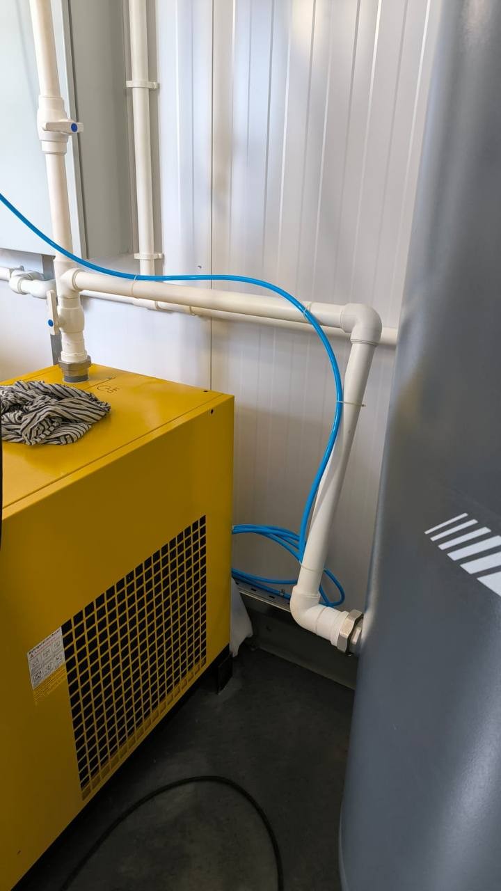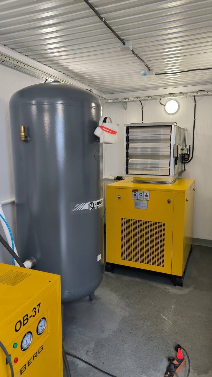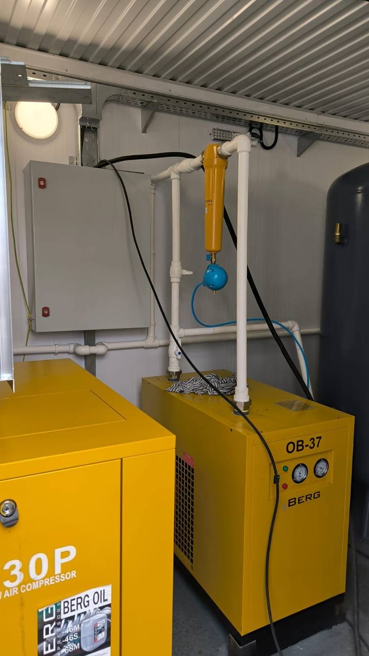 Внутри здания установлено современное оборудование: два винтовых компрессора ВК-30P, рефрижераторный осушитель ОВ-37, вертикальный ресивер РВ-900, а также магистральные фильтры.