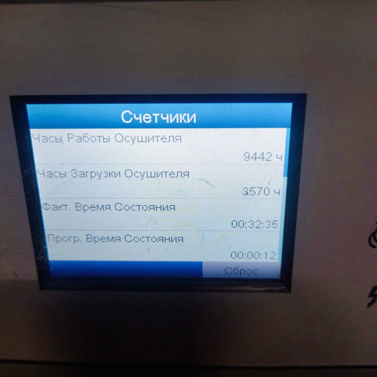 - Измерены основные рабочие параметры осушителя, такие как давление, температура и влажность воздуха на выходе.