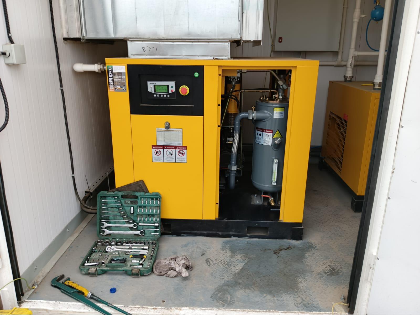 Были проведены работы по замене компрессорного масла и масляного фильтра, а также общая диагностика работы оборудования.